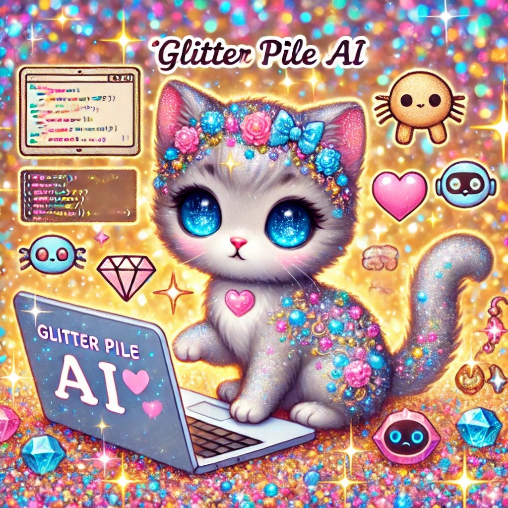Has it really been a week since I last posted? I adopted a stray kitten (shout out to the Cat Distribution System) this week and so I’m on kitten time. This week I’ve been making progress on my AI Art Critique solo project from the Lonely Octopus program, which incorporates new code concepts for me and a lot of design. Well, that isn’t required, but I really want to make it look cute. I hope to finish that this weekend. Until then, enjoy this image ChatGPT4 made for me based on the prompt “Create an image of a sparkly, cute kitten for my Glitter Pile AI blog, to show I’m learning all about AI and coding”.